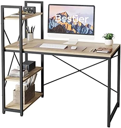 Amazon Com Bestier Computer Desk With Shelves 47 Inch Small Space Home Office Desks With Bookshelf For Study Writing And Work Plenty Leg Room And Easy Assemble Oak Home Kitchen